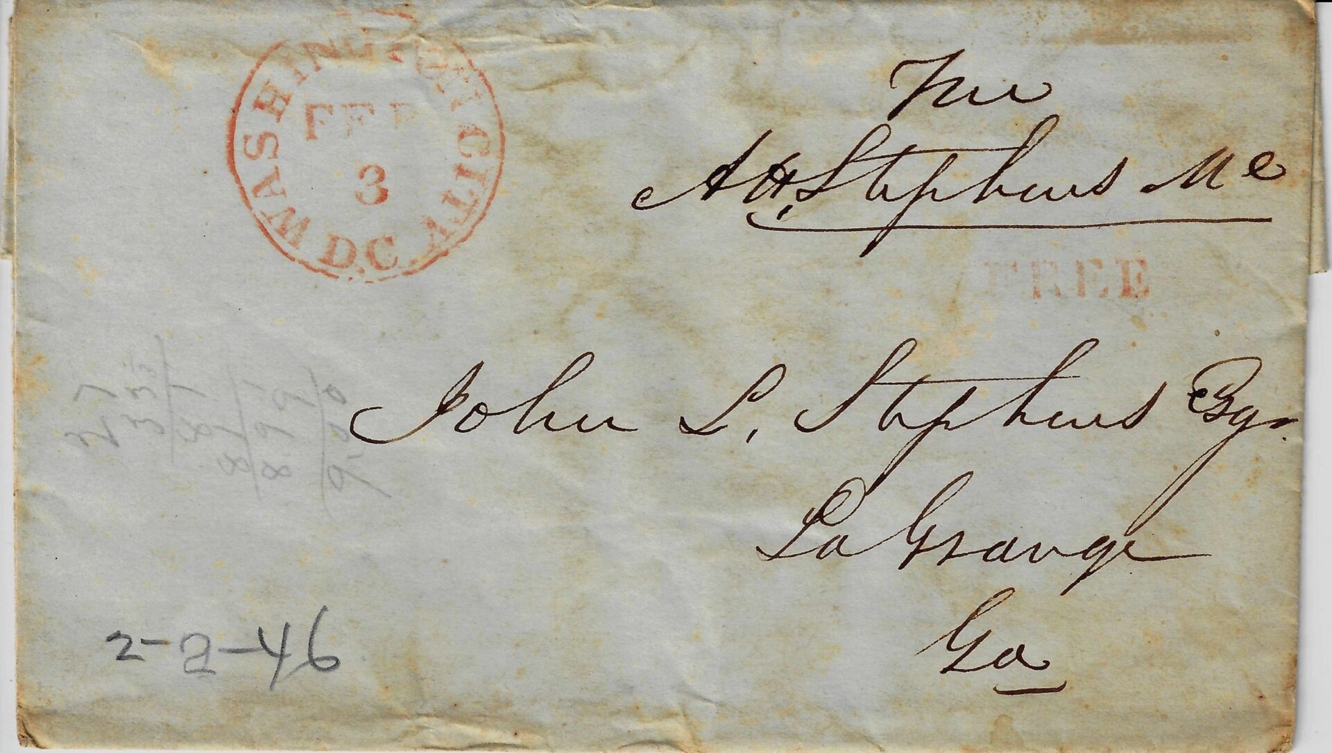 Alexander Stephens – Free Frank Envelope / SOLD