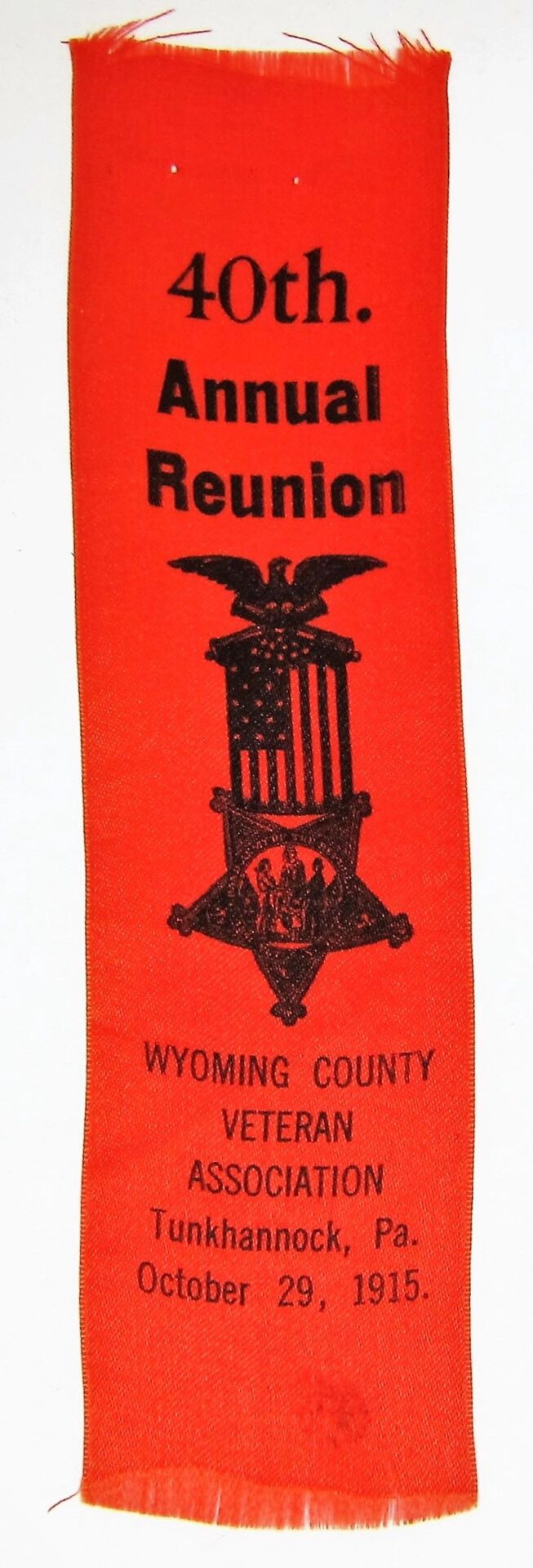 40th Annual Reunion Wyoming County Pennsylvania Veteran Association Ribbon / SOLD