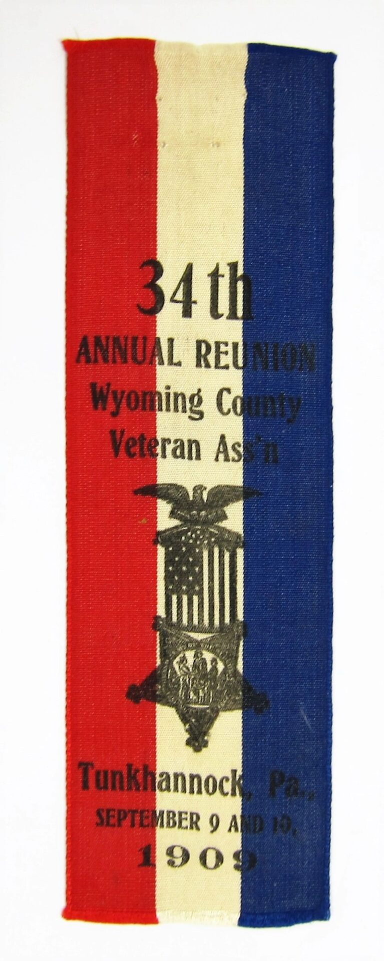 34th Annual Reunion Wyoming County, Pennsylvania Veteran Association Ribbon / SOLD